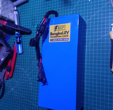 Service kendaraan listrik, penjualan baterai, dan instalasi panel surya profesional.